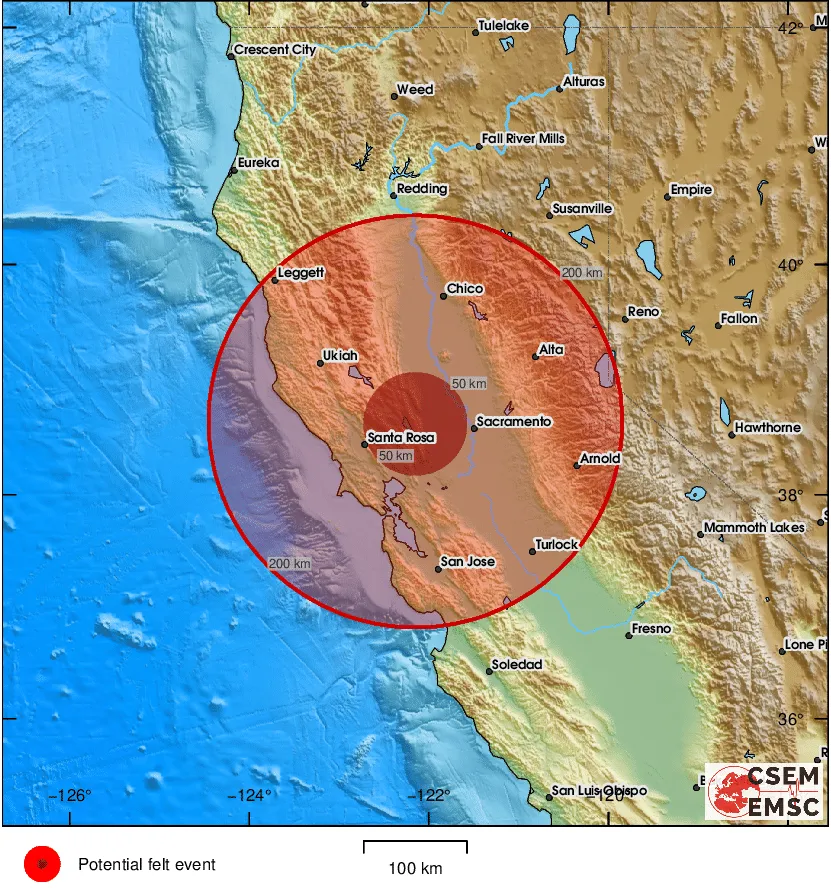 ABD Jeolojik Araştırmalar Kurumu (USGS), depremin yerel saatle 10.44'te (TSİ 21.44) sahilden yaklaşık 63 kilometre uzaklıkta ve 0.6 kilometre derinlikte meydana geldiğini duyurdu. Sarsıntılar, Kaliforniya'nın kuzeyi ile Oregon eyaletinin birçok bölgesinde güçlü bir şekilde hissedildi.