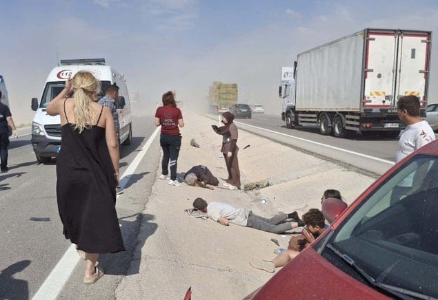 Aksaray-Konya kara yolunun Sultanhanı ilçesi yakınlarında öğle saatlerinde etkili olan yoğun kum fırtınası, trafikte görüş mesafesini neredeyse sıfıra indirdi. Görüş mesafesinin aniden düşmesiyle birlikte peş peşe çarpışan 8 araç, zincirleme trafik kazasına karıştı.