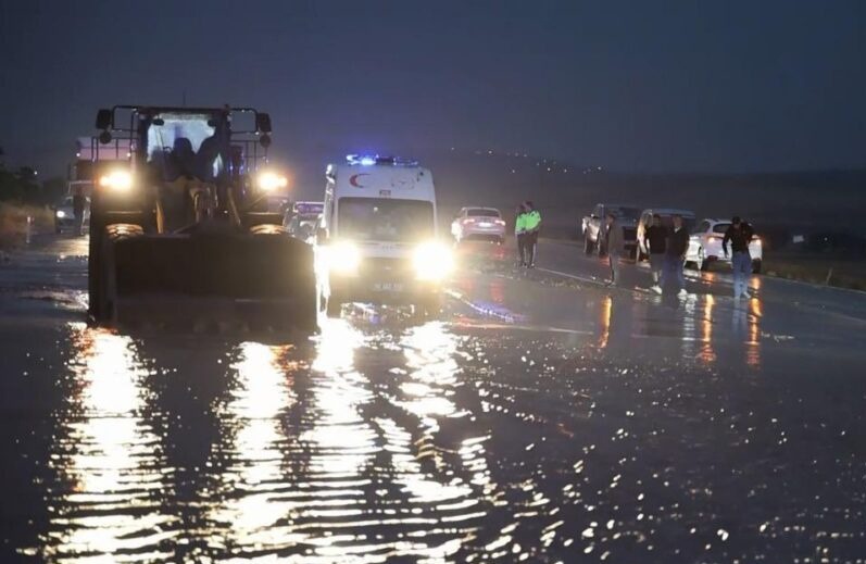 Durumun bildirilmesi üzerine Karayolları ve İl Emniyet Müdürlüğü Bölge Trafik Şubesi ekipleri olay yerine sevk edildi. Karayolu, güvenlik önlemleri alınarak çift yönlü olarak trafiğe kapatıldı. Karayolları ekipleri, iş makineleriyle birlikte yolun ulaşıma açılması için yoğun bir şekilde çalışıyor. Kepçeler ve greyderler yardımıyla karayolda biriken sel suları ve çamur temizlenmeye başlandı.