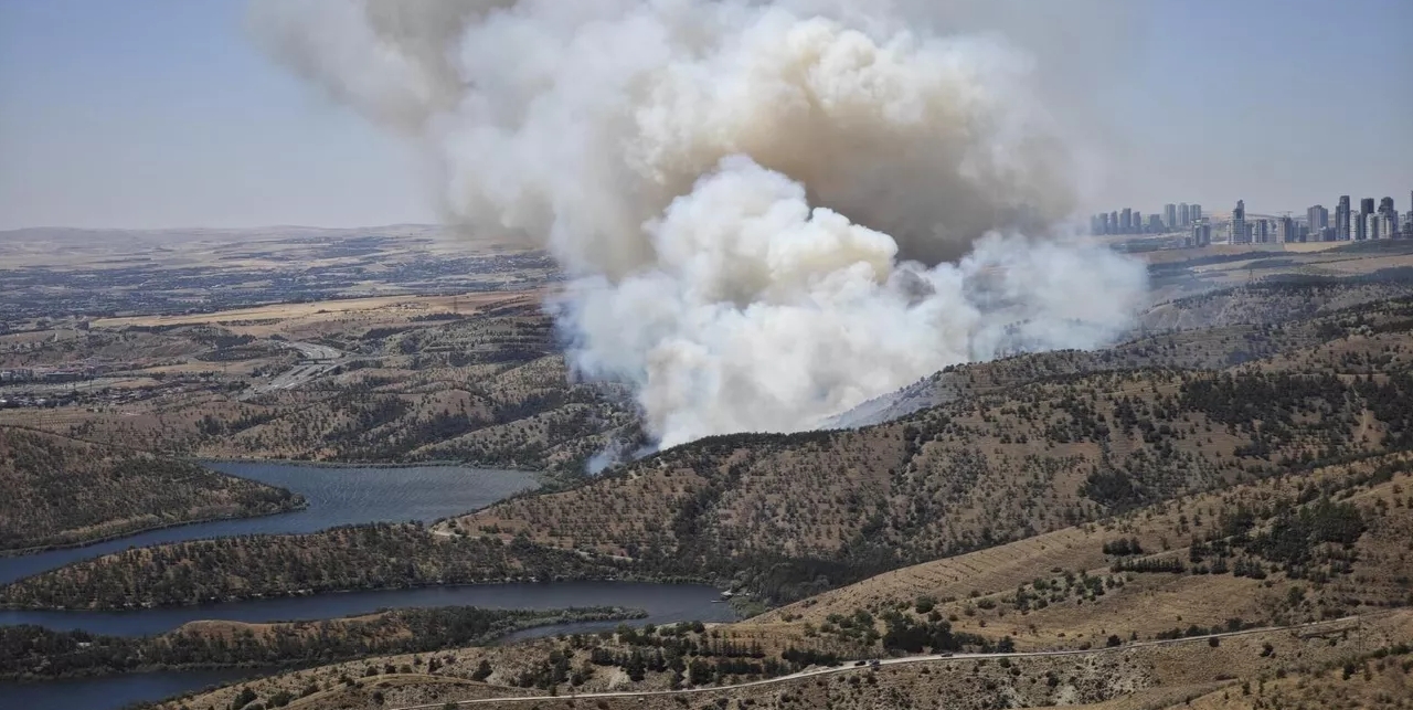 Ankara’nın Gölbaşı ilçesinde, Eymir Gölü çevresindeki ormanlık alanda çıkan yangın kısa sürede büyüyerek ciddi tehdit oluşturdu. Alevlerin hızla yayılması üzerine bölgeye çok sayıda itfaiye aracı ile orman yangın söndürme ekipleri sevk edildi.