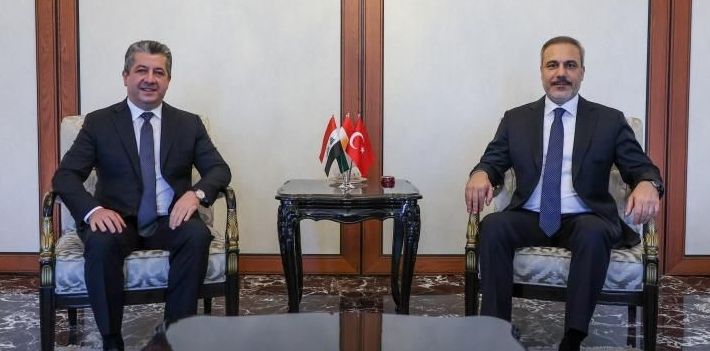 Dışişleri Bakanı Hakan Fidan, Irak Kürt Bölgesel Yönetimi (IKBY) Başbakanı Mesrur Barzani ile Ankara’da bir araya geldi. Görüşme, Dışişleri Bakanlığı'nın sosyal medya platformu X üzerinden yapılan bir paylaşımla duyuruldu. Paylaşımda, toplantıya ait bir fotoğraf da yer aldı.