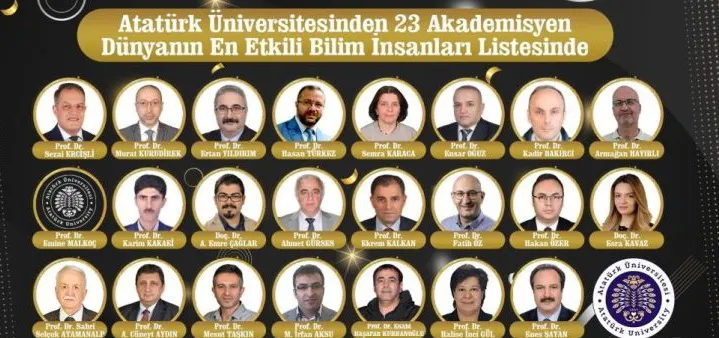 Stanford Üniversitesi’nin her yıl yayımladığı bu prestijli listede, Atatürk Üniversitesinden 23 akademisyen “Kariyer Boyu Etki” kategorisinde, 35 akademisyen ise “Yıllık Etki” kategorisinde yer aldı. Böylece üniversite, toplamda 58 akademisyenle dünyanın en etkili bilim insanları arasında gösterildi.
