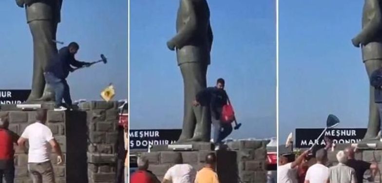 Balıkesir'in Ayvalık ilçesinde, Cumhuriyet Meydanı'ndaki Atatürk heykeline elinde balyozla saldıran bir şahıs, vatandaşların müdahalesi ile etkisiz hale getirildi. Olay, öğle saatlerinde meydana geldi ve çevredeki vatandaşların dikkatini çekti.