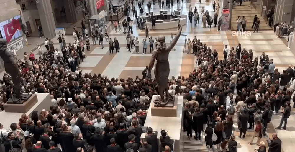 Yapılan çağrı üzerine birçok avukat, adliye binasına geri dönerek heykel önünde sessiz oturma eylemine geçti. Eylem, hukukun üstünlüğü ve savunma hakkına yönelik mesajlarla dikkat çekti.