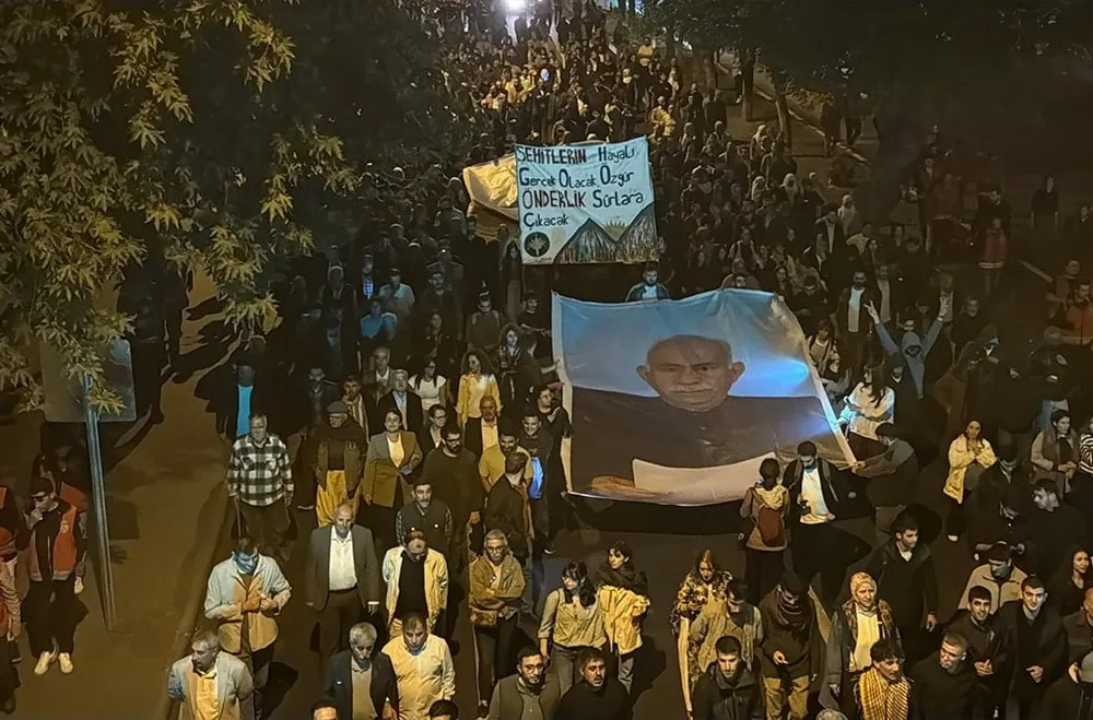 DEM Parti Gençlik Meclisi’nin öncülüğünde düzenlenen yürüyüşe, DEM Parti Diyarbakır Milletvekili Adalet Kaya, Mardin Milletvekili Beritan Güneş, Diyarbakır Milletvekilleri Serhat Eren ve Mehmet Kamaç ile çok sayıda kişi katıldı. Katılımcılar, taşınan Öcalan posterini Sur ilçesindeki Ben u Sen burcuna asmayı hedefliyordu.
