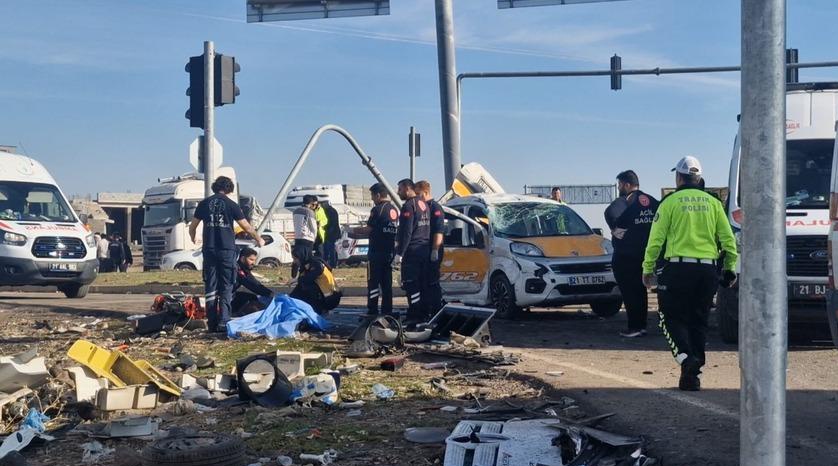 Kaza, Diyarbakır’ın kırsal Karamus Mahallesi yakınlarındaki kavşakta meydana geldi. Sürücüleri henüz belirlenemeyen hafif ticari araç, bir taksi ve bir tır kavşakta çarpıştı. Çarpışmanın etkisiyle araçlarda büyük hasar oluştu.