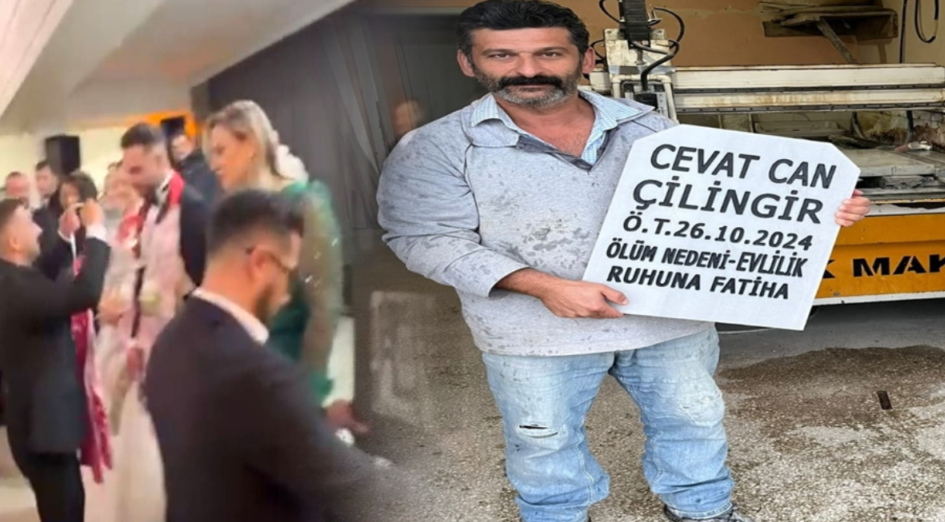 Damadın arkadaşları, salona “Acı kaybımız” yazılı bir çelenkle girdi. Arkalarında, damadın adı yazılı “Ölüm nedeni: Evlilik, ruhuna Fatiha” ifadesinin yer aldığı sahte bir mezar taşı taşıdılar. Damat arkadaşları, düğün ortamında mizahi bir cenaze töreni düzenleyerek katılımcılara eğlenceli anlar yaşattı. Bu sıra dışı sürpriz, salondaki davetlileri hem şaşırttı hem de güldürdü.