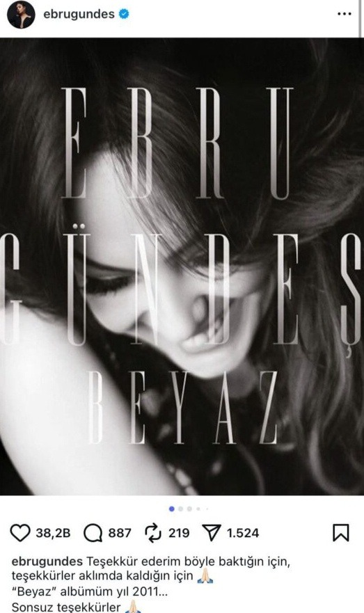 Gözaltı sonrası sosyal medyadan konuyla ilgili paylaşım yapması beklenen Gündeş, sessizliğini koruyarak dikkat çekici bir tercihte bulundu. Şarkıcı, eşinin durumu hakkında yorum yapmayıp, 2011 yılında çıkardığı “Beyaz” albümüyle ilgili bir paylaşım yaptı. Gündeş paylaşımında, “Teşekkür ederim böyle baktığın için, teşekkürler aklımda kaldığın için. Beyaz albümüm, yıl 2011… Sonsuz teşekkürler” ifadelerini kullandı.