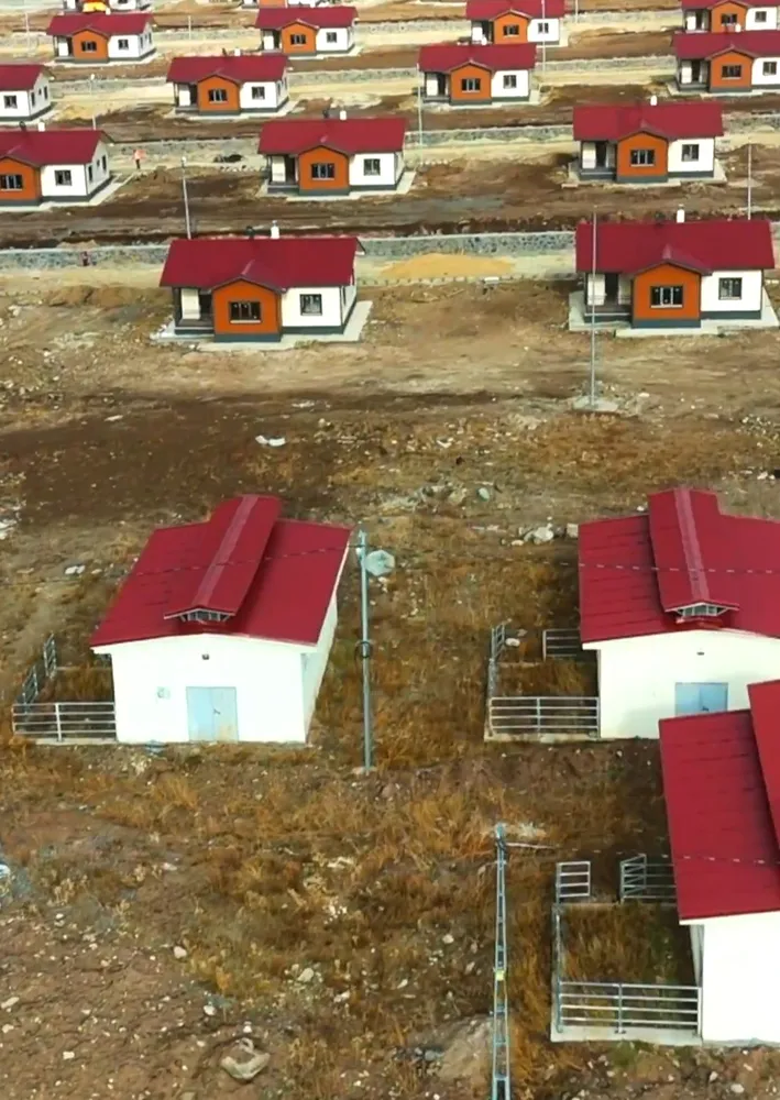 AFAD Başkanlığı tarafından TOKİ aracılığıyla yapımı sürdürülen 56 konut ve 13 ahırın yüzde 95’inin tamamlandığı belirtildi. Konutların iç ve dış inşaat işleriyle birlikte mekanik ve elektrik tesisatları, içme suyu, yağmur suyu ve kanalizasyon hatları ile elektrik ve sokak aydınlatmaları tamamlandı.