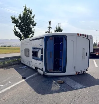 Erzurum’un İbrahim Hakkı Mahallesi Kuzey Çevre Yolu’nda, askeri personel taşıyan bir servis midibüsü devrildi. Kazada sürücüyle birlikte toplam 13 kişi hafif şekilde yaralandı.