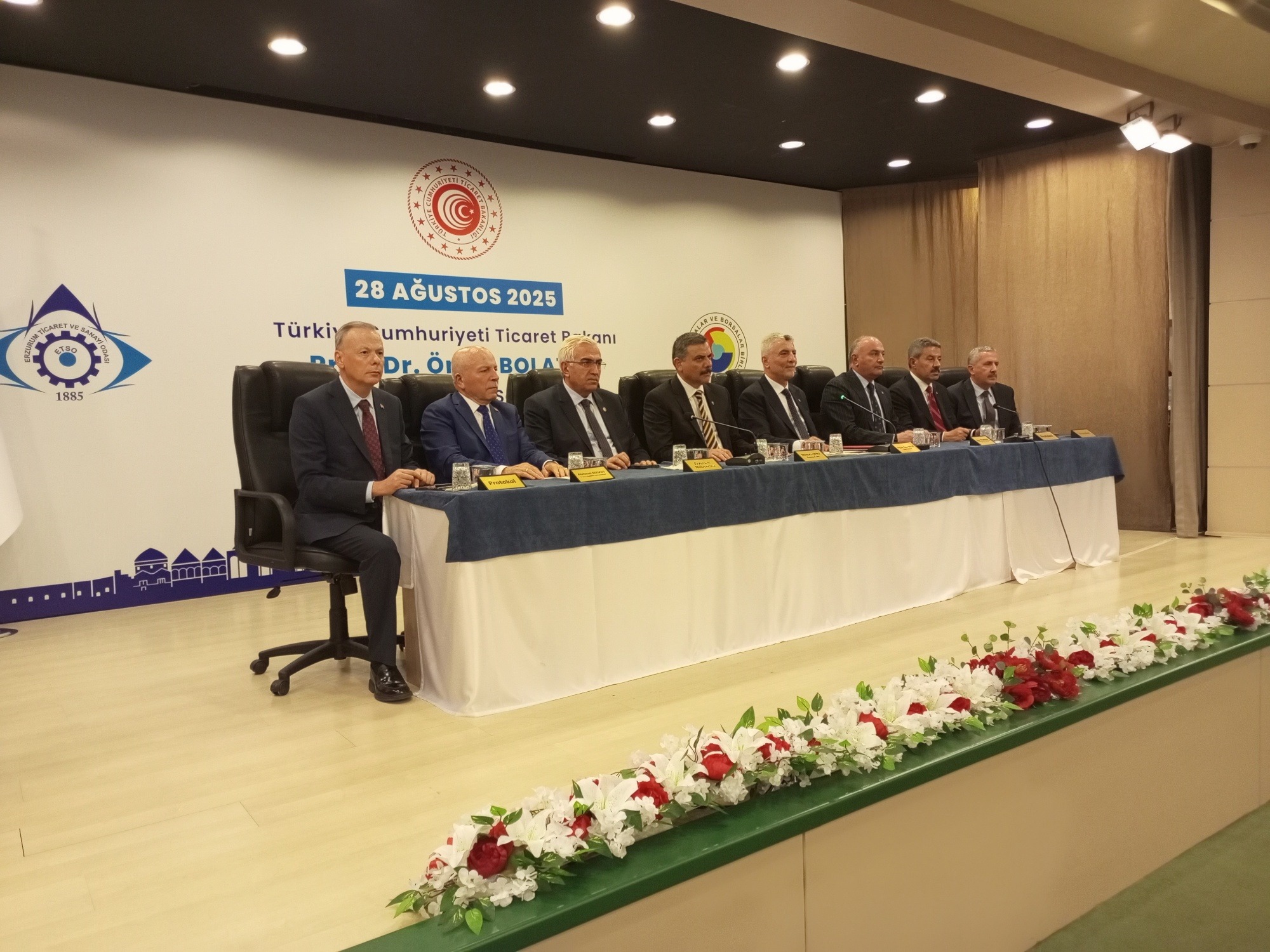 Erzurum’da düzenlenen ekonomi buluşmasında Ticaret Bakanı Ömer Bolat, Erzurum Valisi Mustafa Çiftçi, Büyükşehir Belediye Başkanı Mehmet Sekmen ve Erzurum Ticaret ve Sanayi Odası (ETSO) Başkanı Saim Özakalın önemli açıklamalarda bulundu. Kentin yatırım potansiyeli, ticaret hacminin geliştirilmesi, istihdam olanakları ve bölgesel kalkınma projeleri toplantının ana gündemini oluşturdu.
