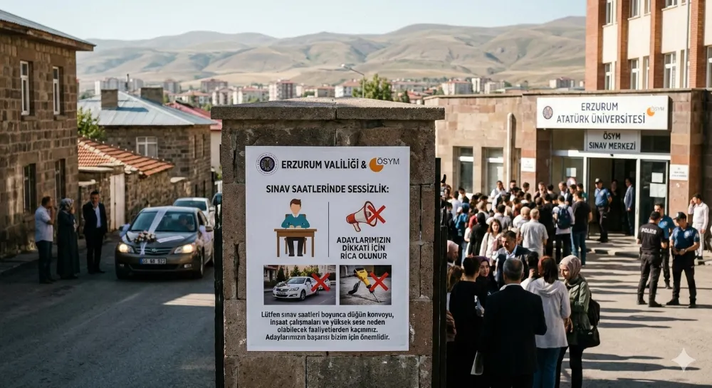 Erzurum’da gerçekleştirilecek Ölçme, Seçme ve Yerleştirme Merkezi (ÖSYM) sınavları öncesinde sınav güvenliğinin sağlanması ve adayların sınava sağlıklı bir ortamda girebilmesi amacıyla önemli bir duyuru yapıldı. Yetkililer, sınav saatlerinde sınav binaları çevresinde oluşabilecek gürültünün adayların dikkatini olumsuz etkileyebileceğine dikkat çekerek vatandaşlardan hassasiyet göstermelerini istedi.