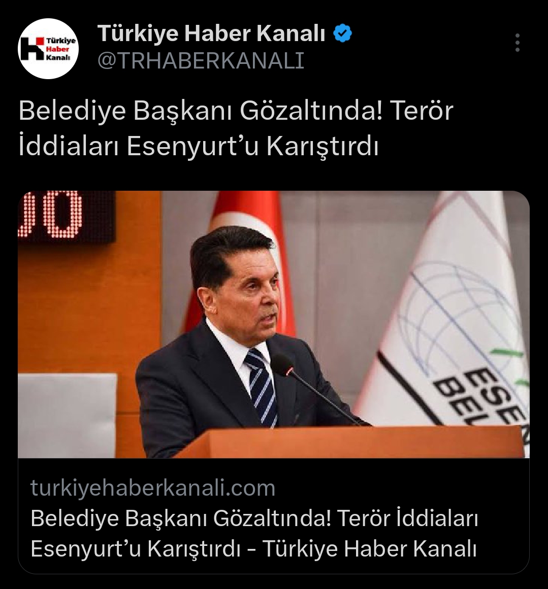 İstanbul – Esenyurt Belediye Başkanı Ahmet Özer, 'PKK/KCK silahlı terör örgütü üyesi olmak' suçlamasıyla yürütülen soruşturma kapsamında tutuklandı.**