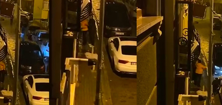 Evin önüne gelen kadının davranışları, eşi ve oğlu tarafından sakinleştirilmeye çalışıldı. Ancak, kadın dakikalarca bağırmaya devam ederek, olayın şiddetini artırdı. Ailenin müdahalesiyle zorla uzaklaştırılan kadın, olayın ardından polis ekiplerine başvurdu.