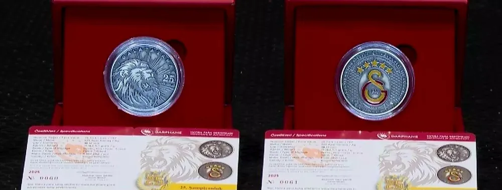 Hazine ve Maliye Bakanlığı Darphane ve Damga Matbaası Genel Müdürlüğü, Galatasaray Spor Kulübü’nün 2024-2025 Trendyol Süper Lig sezonunu şampiyon olarak tamamlaması onuruna özel bir hatıra para hazırladı. 925 ayar gümüşten üretilen ve koleksiyon değeri taşıyan bu özel para, sınırlı sayıda basılarak satışa sunuluyor.