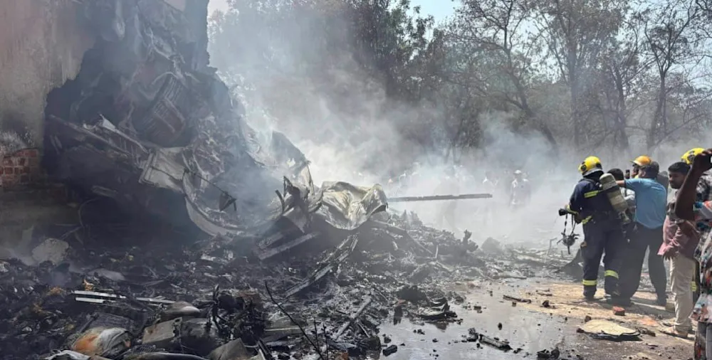 Uçak, Meghani Nagar adlı yoğun nüfuslu bir yerleşim bölgesine düştü. Bölgeden gelen ilk görüntülerde, uçağın enkazının alevler içinde kaldığı, gökyüzüne yoğun siyah dumanların yükseldiği görüldü. Mahalledeki binalar ve park halindeki bazı araçlarda da hasar meydana geldi.