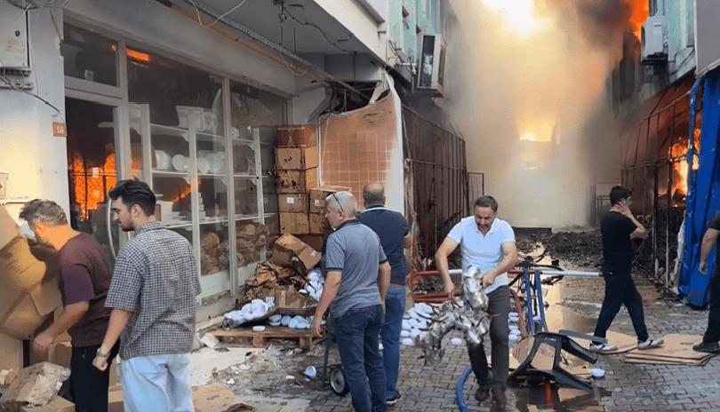 Alevlerin hızla yayılmasıyla birlikte bazı dükkanlarda küçük çaplı patlamalar yaşandı, kimi iş yerlerinde ise kısmi çökmeler meydana geldi. Yangın nedeniyle bölgedeki trafik tamamen kilitlendi. Çok sayıda ilçeden sevk edilen itfaiye ekipleri yangına müdahale etti.