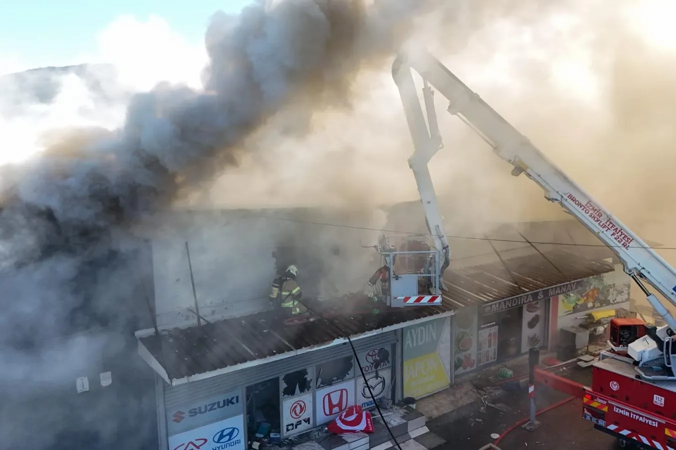 İş yerinden yükselen yoğun duman ve alevleri fark eden çevredekiler, durumu vakit kaybetmeden 112 Acil Çağrı Merkezi’ne bildirdi. İhbar üzerine İzmir Büyükşehir Belediyesi İtfaiye Dairesi Başkanlığı ekipleri bölgeye sevk edildi. 14 araç ve 70 personelle olay yerine ulaşan ekipler, yangına hızla müdahale etti.