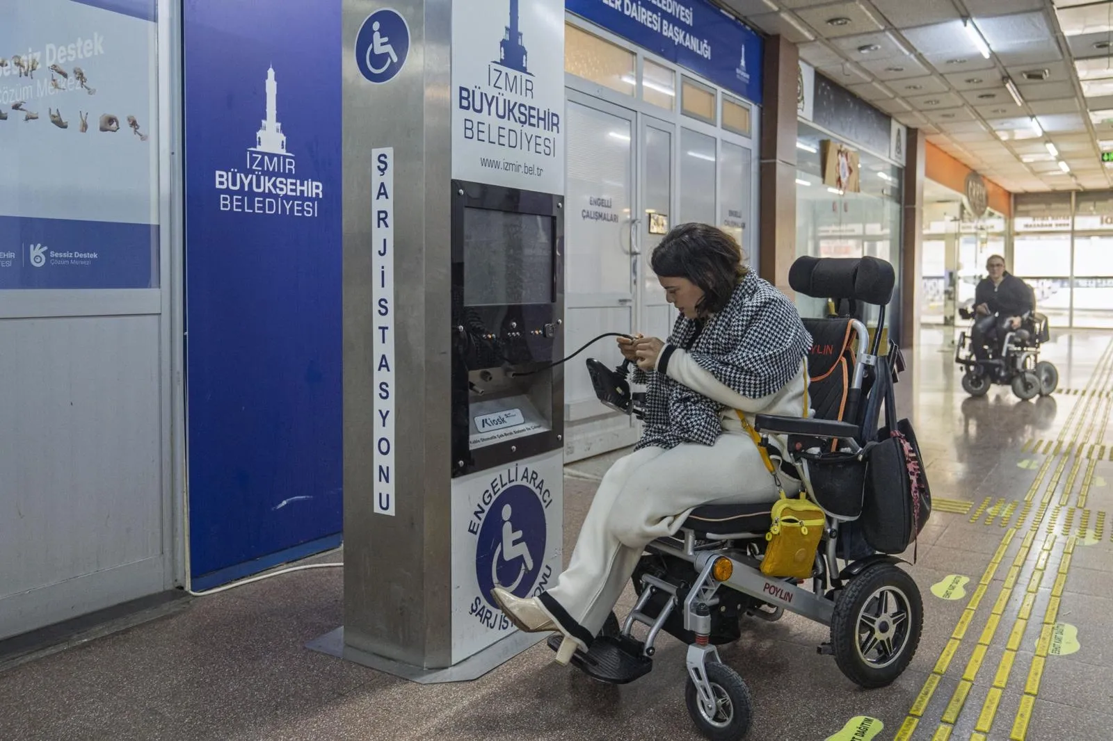 Yolda kalan engelli yurttaşlar, 0232 293 98 24 numaralı telefon hattı ya da 153 Hemşehri İletişim Merkezi aracılığıyla belediyeye ulaşabiliyor. İhbarın ardından ekipler, engelsiz ulaşım araçlarıyla yurttaşın bulunduğu adrese giderek destek sağlıyor. Onarım gerektiren tekerlekli sandalyeler Konak Hizmet Merkezi’ndeki istasyona götürülürken, tamir süresi boyunca yurttaşlara ücretsiz yedek sandalye veriliyor. Böylece günlük yaşamın aksaması önleniyor. Merkezde ayrıca akülü tekerlekli sandalyeler için şarj hizmeti de sunuluyor.