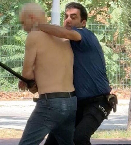 Bıçağı karnına dayayan şüpheliyi ikna etmeye çalışan polis ekipleri, uzun süre çaba gösterdi. Ancak Mülayim P. direndi ve yanına kimseyi yaklaştırmadı. Bir polis memuru, saldırganın dalgınlığından faydalanarak arkadan yaklaşarak copla müdahale etti. Elindeki bıçak düşen Mülayim P., etkisiz hale getirilerek gözaltına alındı.