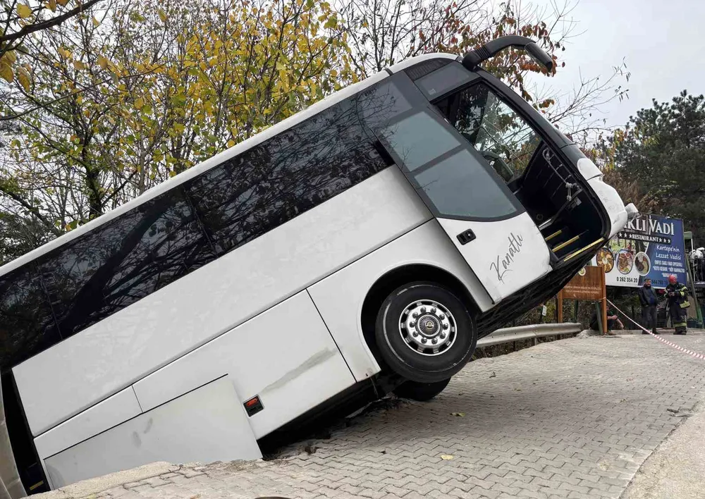 Olay, saat 12.00 sıralarında Maşukiye Mahallesi Kartepe Caddesi’nde meydana geldi. 34 GIJ 323 plakalı otobüs, park halindeyken hareket ederek rampadan aşağı indi. Bariyeri aşan otobüsün arka tekerlekleri toprak zemine değdi, ön kısmı ise havada asılı kaldı.