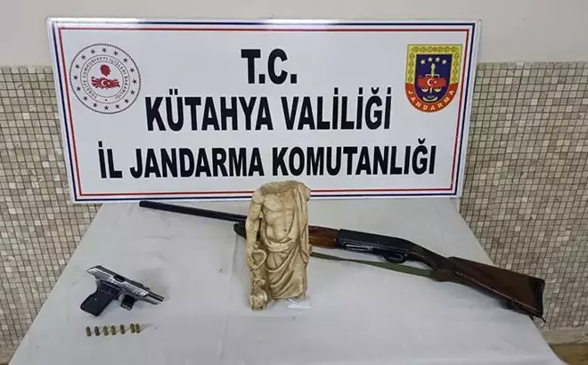 Kütahya’nın Emet ilçesinde jandarma ekipleri, Yunan mitolojisinde tıp ve sağlık tanrısı Asklepios’u simgeleyen milattan önce 5’inci yüzyıla ait heykel ele geçirdi. Operasyonda ayrıca ruhsatsız tabanca, fişekler ve yarı otomatik av tüfeği bulundu.