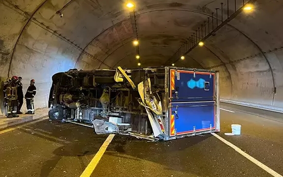 Kocaeli geçişindeki T-5 Tüneli'nde meydana gelen kazada, otomobil ile çarpışan kamyonet devrildi. İstanbul yönünde trafik geçici olarak durma noktasına geldi.