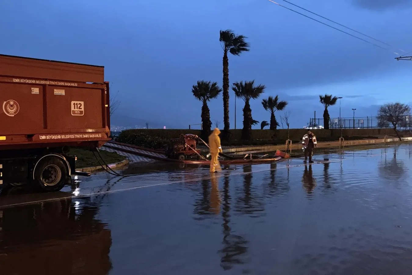 Başta Alsancak Kordon ve Karşıyaka kıyı kesimi olmak üzere riskli bölgelerde İzmir Büyükşehir Belediyesi ekipleri önlem aldı. İZSU ekipleri rögarlarda geri basma riskine karşı pompa sistemlerini devreye alırken, itfaiye ekipleri su baskını ihbarlarına anında müdahale etti. Zabıta ekipleri de kıyı hattında düzenli devriye faaliyetlerini sürdürdü. Kent genelindeki deniz taşmasına karşı Büyükşehir ekipleri çalışmalarına devam ediyor.