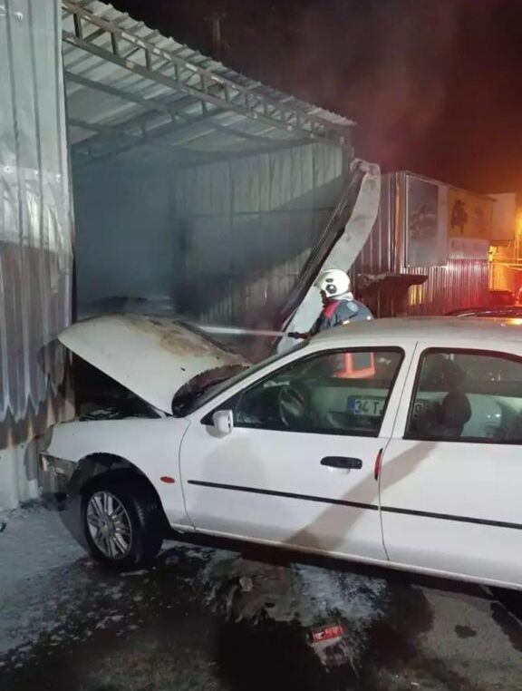 **Malatya –** Malatya'nın Çavuşoğlu Mahallesi Küçük Sanayi Sitesi'nde oto tamirciliği yapan Özgür Ö., eşiyle tartıştıktan sonra iş yerini ateşe vererek hem kendini hem de çevresindekileri tehlikeye attı. Akşam saatlerinde çıkan yangında iş yeri tamamen kullanılamaz hale gelirken, iş yerinin önünde park halinde duran 4 otomobil de büyük zarar gördü.
