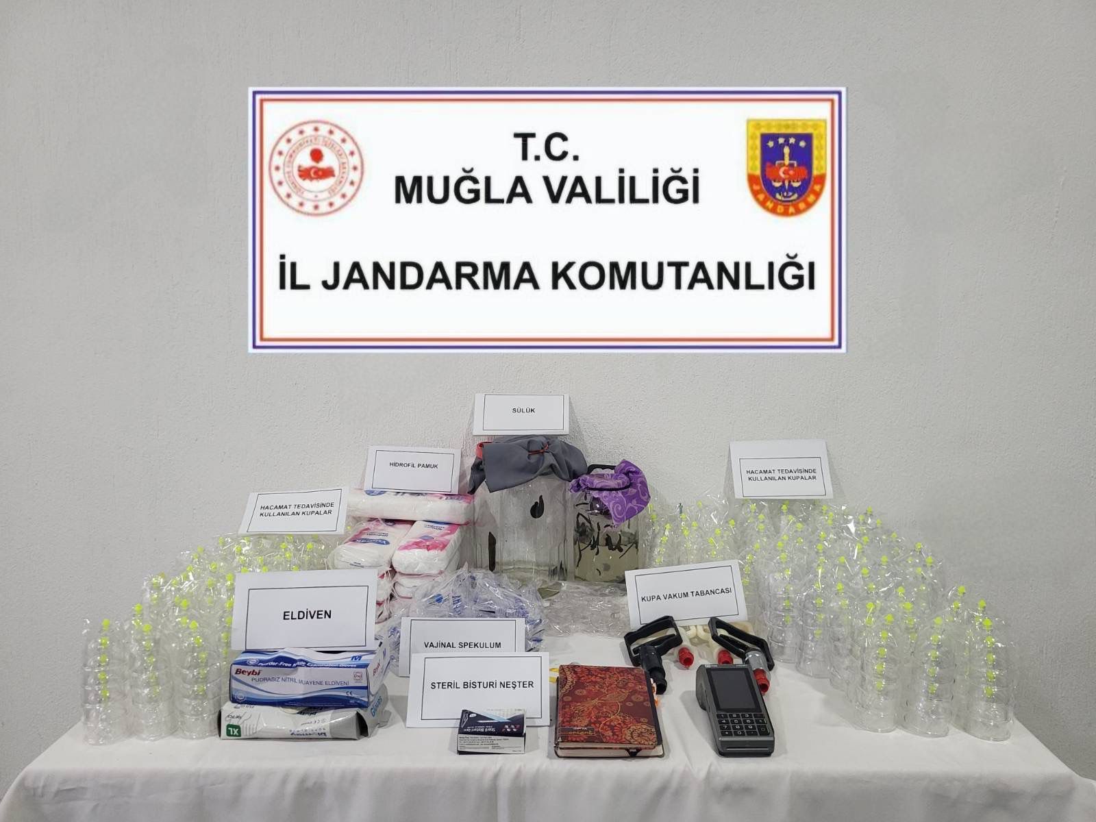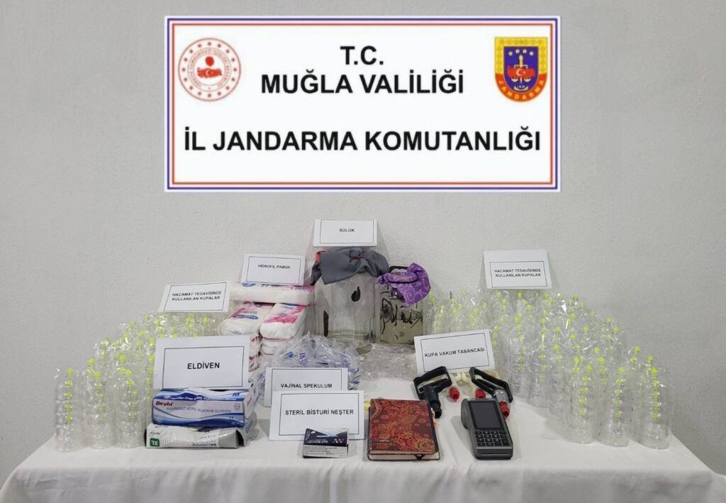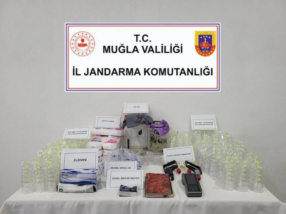 Ortaca İlçe Jandarma Komutanlığı ve İlçe Sağlık Müdürlüğü ekipleri, T.Ö.Y. isimli şahsın, ikamet ettiği evin alt katında ruhsatsız şekilde hacamat ve sülük tedavisi yaptığı bilgisine ulaştı. Bunun üzerine, 24 Ocak 2025 tarihinde adrese operasyon düzenlendi.