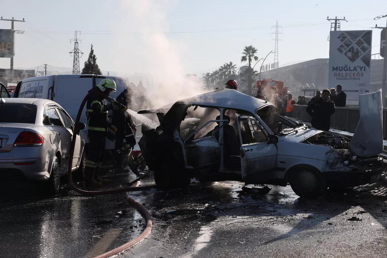 Muğla’nın Menteşe ilçesine bağlı Bayır Mahallesi'nde, iki otomobil ve bir minibüsün karıştığı zincirleme trafik kazası, paniğe yol açtı. Kazanın etkisiyle araçlardan bazıları alev aldı. Çevredeki vatandaşların ihbarı üzerine olay yerine sağlık, itfaiye ve jandarma ekipleri sevk edildi.