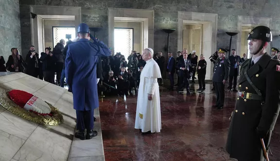 Vatikan Devlet Başkanı Papa 14. Leo, resmi Türkiye ziyareti kapsamında ilk olarak Ankara’ya geldi. 12.23’te Ankara Esenboğa Havalimanı’na iniş yapan Papa 14. Leo, Kültür ve Turizm Bakanı Mehmet Nuri Ersoy ve diğer yetkililer tarafından karşılandı. Ziyaretin ilk durağı Anıtkabir oldu.