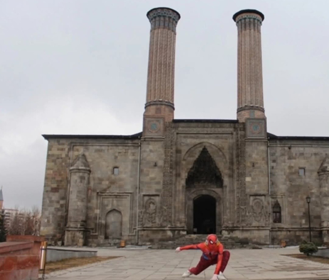 Erzurum’daki tarihi ve turistik noktaları gezen Koç, Çifte Minareli Medrese, Ulu Camii ve Erzurum Kalesi gibi önemli mekanları ziyaret etti. Özellikle Cumhuriyet Caddesi’nde sergilediği enerjik ve eğlenceli hareketlerle çocukların ilgisini çeken Koç, yanına gelen miniklere 'Örümcek Adam' temalı maskotlar ve anahtarlıklar hediye etti. Ziyaretçileriyle bol bol fotoğraf çektiren gönüllü gezgin, çocuklara neşe saçmaya devam ediyor.