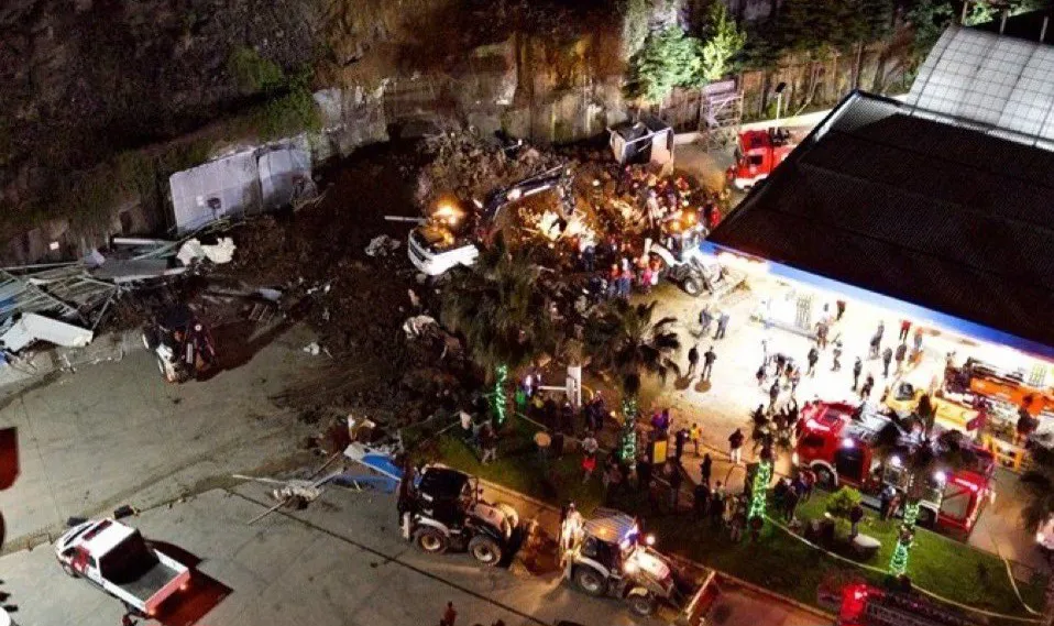 Facia, dün saat 23.20 sıralarında Toptepe Mahallesi'nde meydana geldi. Dağdan kopan toprak ve kaya parçaları, akaryakıt istasyonunun oto yıkama alanına düştü. O sırada araçlarını temizleyen Kaya ailesi göçük altında kaldı. İhbar üzerine olay yerine çok sayıda arama-kurtarma ve sağlık ekibi sevk edildi.