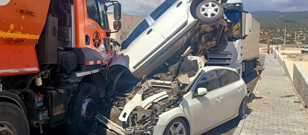 Sanayi bölgesindeki balık işleme fabrikasında çalışan işçilerin park ettiği 13 motosiklet ile birlikte 34 NE 9499 ve 33 AVM 726 plakalı otomobillere çarpan kamyon, bu araçların savrulmasına yol açtı. Savrulan otomobillerden biri, yol kenarında bekleyen 20 AEP 985 plakalı tıra çarptı.