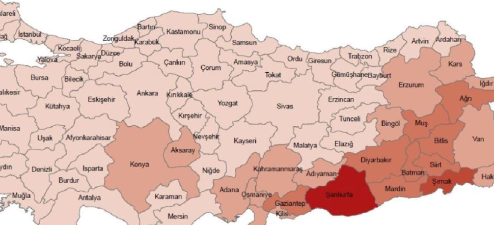Doğurganlık hızında Şanlıurfa’yı sırasıyla Ağrı, Bitlis, Diyarbakır, Gaziantep, Mardin, Muş, Siirt, Batman ve Şırnak takip etti. Ancak bu illerin her birinde de doğum oranlarında yıllar içinde önemli düşüşler yaşandığı gözlemlendi.