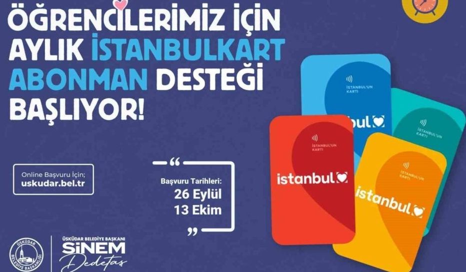 Başvurular, 26 Eylül ile 13 Ekim tarihleri arasında alınacak. Toplamda 5 bin öğrenciye yapılacak destek için başvurular, Üsküdar Belediyesi’nin resmi internet sitesi üzerinden çevrimiçi olarak gerçekleştirilecek. Aylık İstanbulkart abonman desteğine başvurmak için öğrencilerin, “vukuatlı nüfus kayıt örneği”, “öğrenci belgesi”, “IBAN bilgisini gösterir belge” ve “SGK hizmet döküm belgesi” gibi belgeleri sunmaları gerekecek.