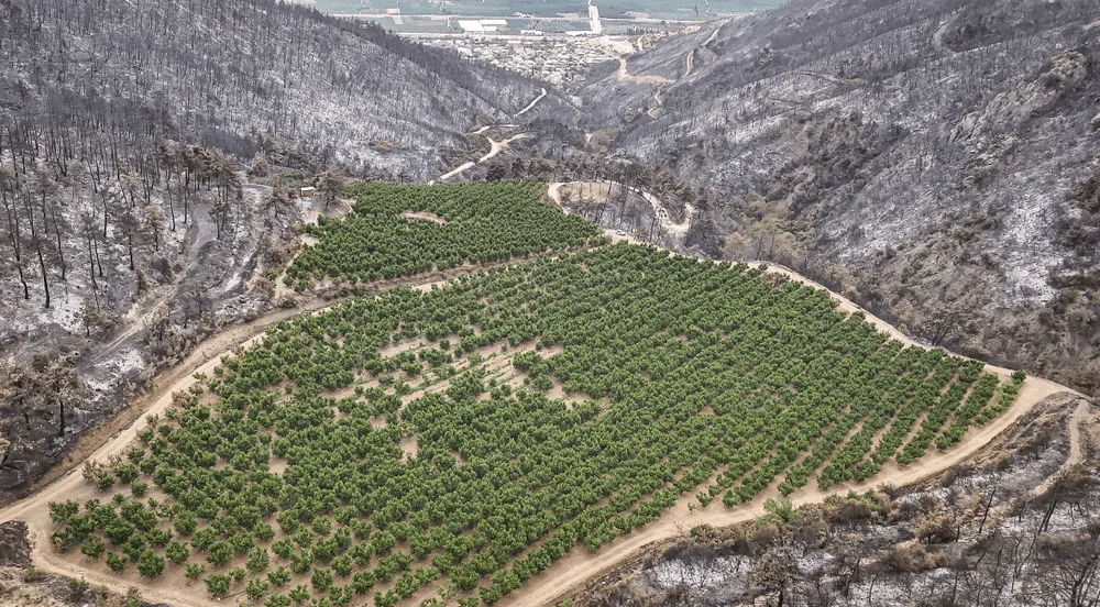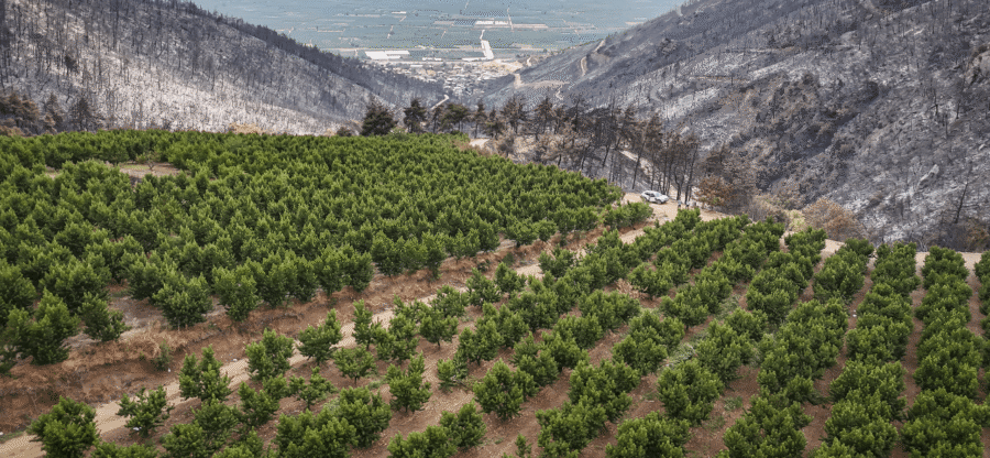 Bursa'nın Gürsu ve Kestel ilçeleri arasında 26 Temmuz'da başlayan ve bir gün sonra kontrol altına alınan büyük orman yangınında, adeta mucize denilebilecek bir olay yaşandı. Yangının etkilediği bölgede yer alan 48 dönümlük nektarin bahçesi, alevlerin ortasında kalmasına rağmen hiçbir zarar görmedi.