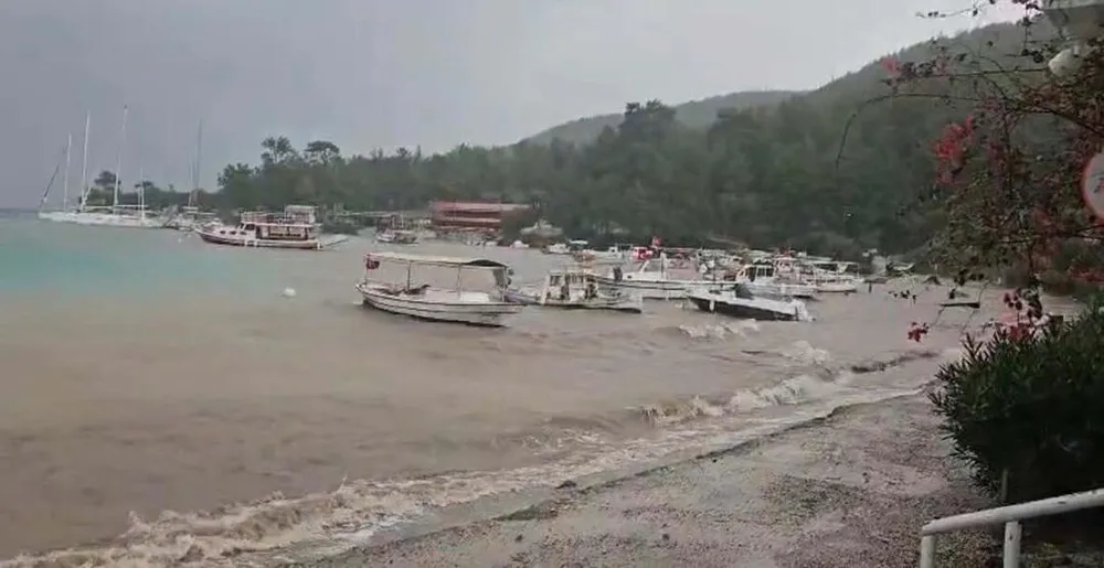 Muğla’nın Gökova Körfezi’nde bulunan dünyaca ünlü Akbük Koyu, sabah saatlerinde etkisini artıran kuvvetli fırtınanın vurmasıyla adeta savaş alanına döndü. Meteoroloji 4’üncü Bölge Müdürlüğü’nün günler öncesinden yaptığı uyarıların ardından bölgede sağanak ve sert rüzgar etkili olurken, özellikle kıyı şeridinde önemli hasarlar meydana geldi. Balıkçı teknelerinin bağlı bulunduğu küçük iskeleler yıkılırken, bazı sandalların fırtına nedeniyle battığı öğrenildi.