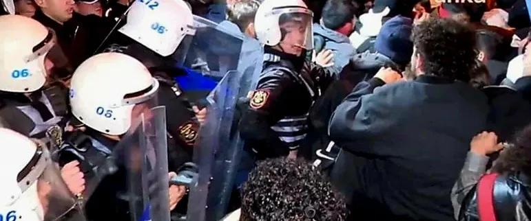 Ankara'da dün akşam saatlerinde üniversite öğrencilerinin, tutuklanan siyasetçileri protesto etmek amacıyla gerçekleştirdiği eyleme polis müdahale etti. Kızılay Konur Sokak'ta toplanan yaklaşık 300 kişilik grup, polis uyarılarına aldırmayarak yürüyüşe geçti ve polise mukavemet gösterdi. Olayın ardından 30 kişi gözaltına alındı.