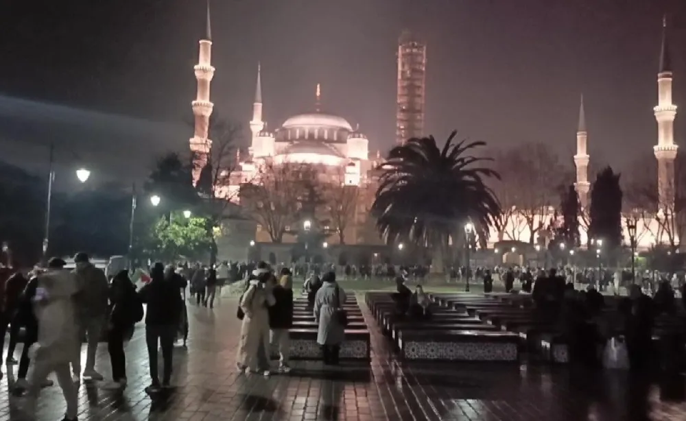 Protesto yürüyüşüne katılmak isteyen vatandaşlar, sabah namazı için Ayasofya Camii’nde toplandı. Caminin içi ve çevresi kısa sürede dolup taşarken, bazı katılımcılar namazlarını dışarıda kılmak zorunda kaldı. Namazın ardından sloganlar ve tekbirler eşliğinde yürüyüşe geçildi.