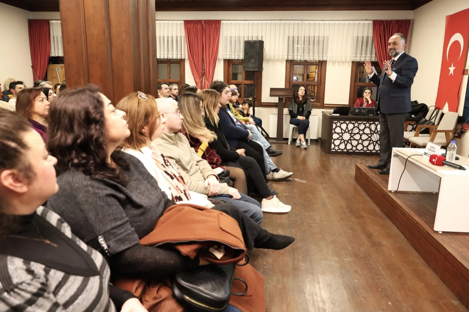 Yoğun katılımla gerçekleşen etkinlikte Karadayı, Sokrates öncesi filozofları günümüz perspektifinden ele alarak felsefenin günlük yaşamla olan bağını örneklerle anlattı.