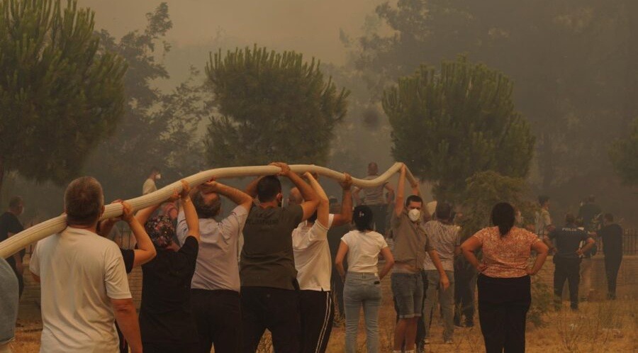Yangın bölgesinde sadece profesyonel ekipler değil, gönüllü vatandaşlar da aktif olarak görev aldı. Hortum taşıyan vatandaşlar, itfaiye ekiplerine su sağladı; bazı bölgelerde yangının yayılmasını önlemek için hendekler kazıldı. Sivil toplum kuruluşları da bölgeye yardım malzemeleri göndermeye başladı.