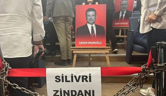 Kurultay salonunda dikkat çeken bir diğer detay ise “Silivri Zindanı” köşesi oldu. Cezaevinde tutuklu bulunan belediye başkanlarının fotoğrafları bu köşeye asıldı ve önüne “Silivri Zindanı” yazısı ile zincir sembolü konuldu.