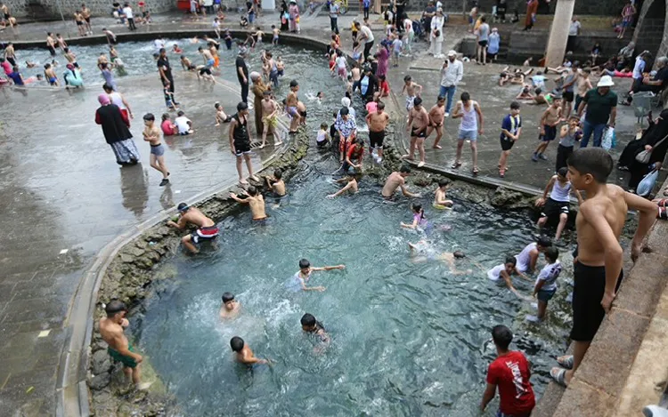 Aşırı sıcak hava nedeniyle vatandaşlar, serinlemek için çeşitli yöntemlere başvurdu. Merkez Sur ilçesinde bulunan Anzele Parkı’ndaki süs havuzu, çocukların en çok tercih ettiği yerlerden biri oldu. Çocuklar havuza girerek serinlemeye çalıştı.