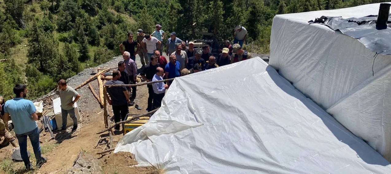 Oltu taşı için ocaktan kehribar çıkaran işçiler Tayfur Narşap, Ömer Narşap ve Temel Korkmaz göçük altında kaldı.