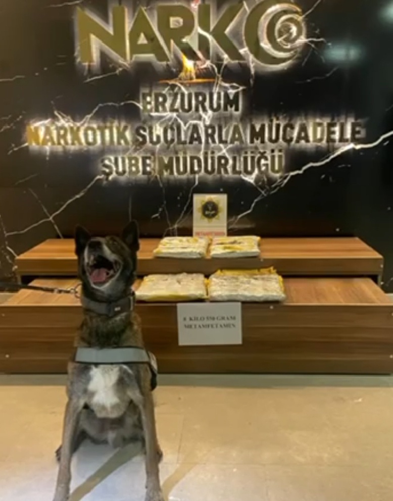 Narkotik Madde Arama Köpeği (NMAK) MAGNUM’un da katıldığı operasyonda, yapılan detaylı aramalarda 8 kilo 550 gram metamfetamin maddesi ele geçirildi.