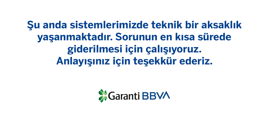 “Şu anda sistemlerimizde teknik bir aksaklık yaşanmaktadır. Sorunun en kısa sürede giderilmesi için çalışmalarımız devam etmektedir. Gösterdiğiniz anlayış için teşekkür ederiz.”