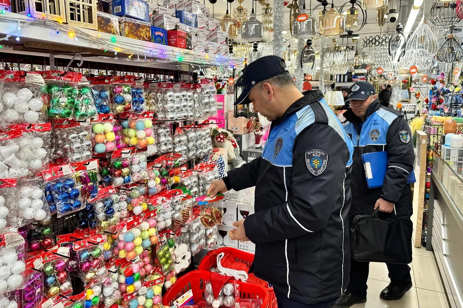 İstanbul'da Bakırköy Belediyesi Zabıta Müdürlüğü ekipleri, vatandaşların yılbaşı hazırlıklarını yaptığı market, kuruyemişçi, yiyecek-içecek ve hediyelik eşya satan işletmelere yönelik denetimlerini artırarak vatandaşların sağlıklı ve güvenli alışveriş yapmasını sağlıyor.
