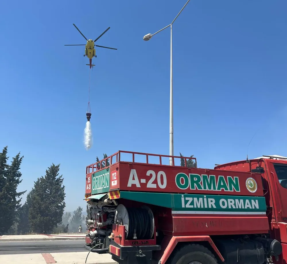 İzmir Orman Bölge Müdürlüğü ekipleri, yangına hem havadan hem karadan müdahale ediyor. Bölgeye sevk edilen 4 uçak, 6 helikopter, 16 arazöz, 4 su ikmal aracı ve 3 dozerle yoğun bir söndürme çalışması başlatıldı.